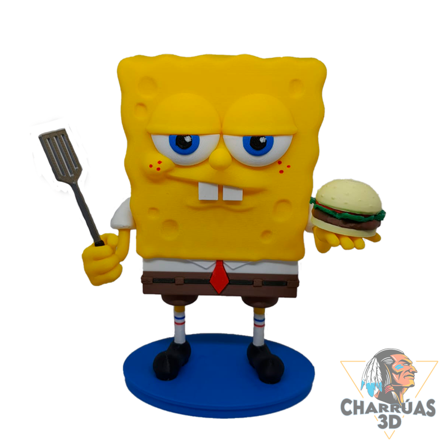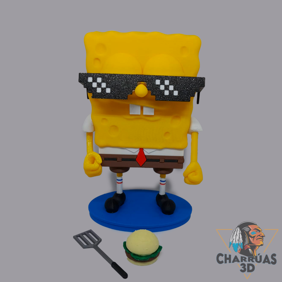 La figura semi-articulada de Bob Esponja es una pieza impresa en 3D, diseñada con una explosión de colores y un estilo llamativo, ideal para fans, coleccionistas y amantes del mundo 3D.